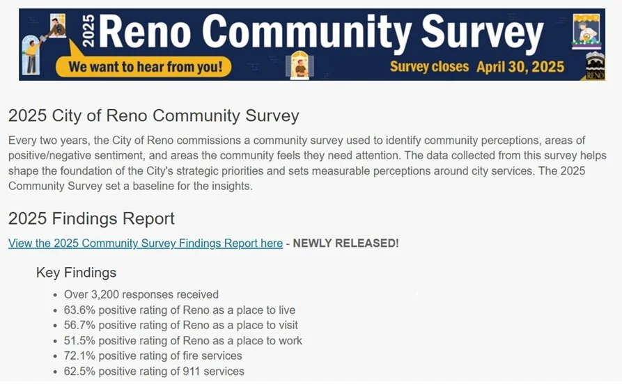 With numbers like that (and a sample size that wouldn’t pass a high school stats quiz), the city can pat itself on the back for a “job well done” — while ignoring the residents who actually show up, speak out, and ask for change, but hey, the City of Reno will tell you that is just a small amount of the population, you know - just like their poll.