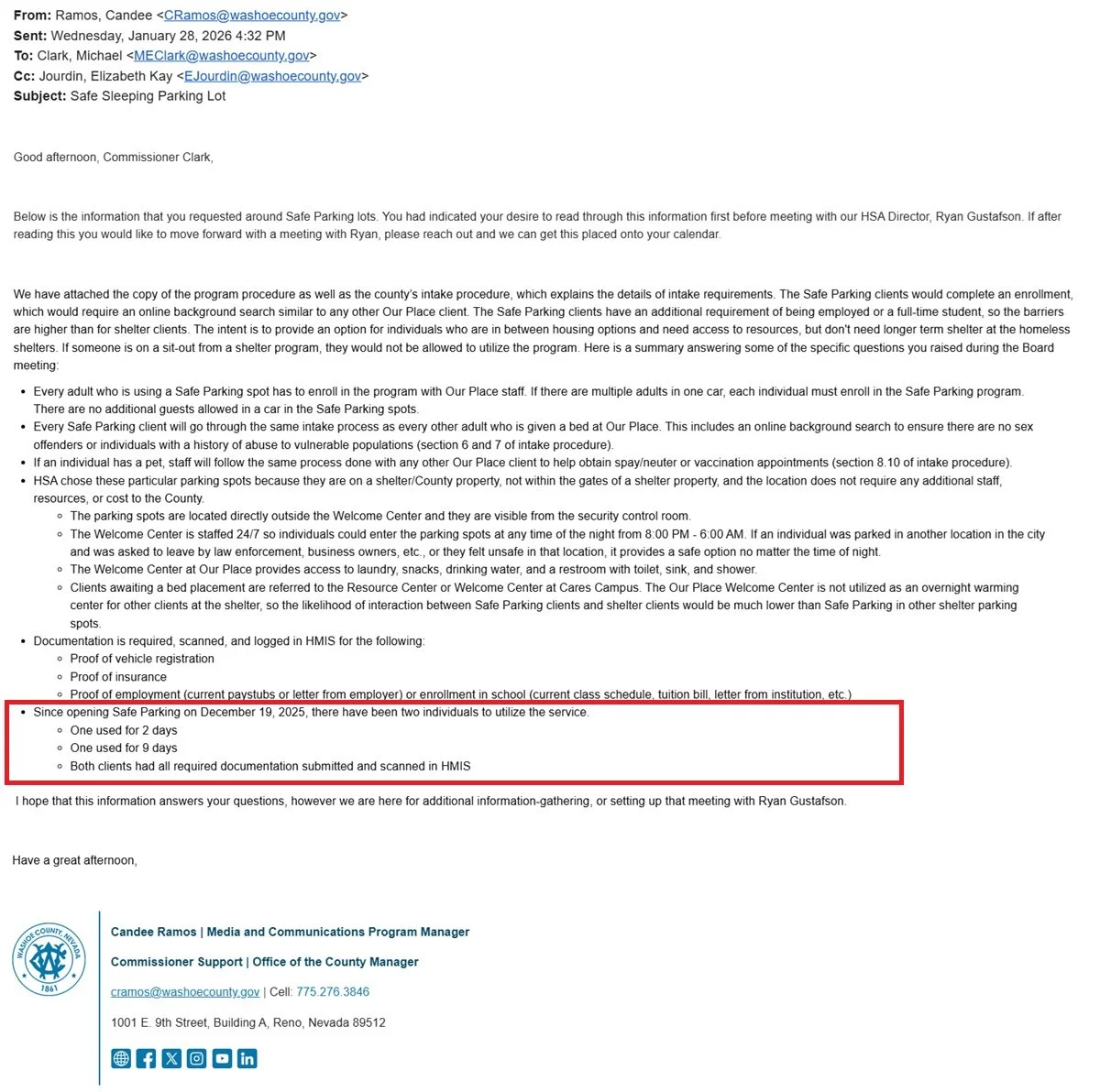 Meanwhile, Clark’s earlier parking-lot proposal appears to have been quietly shelved, replaced with discussions about relocating services to facilities already tasked with protecting women and children — locations that would naturally require stricter controls and limited access. Which raises the inevitable political question: was the goal a workable solution, or simply the appearance of action? You know, the county helping Garcia with press to keep her seat.