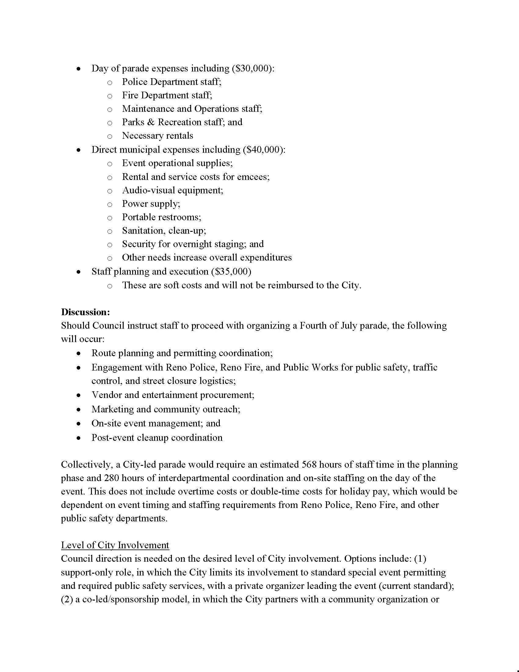 If this were a serious proposal, it might help if Lorton—or anyone in his orbit—actually read the city staff report. The one that lays out what it really takes to pull off a parade in Reno: