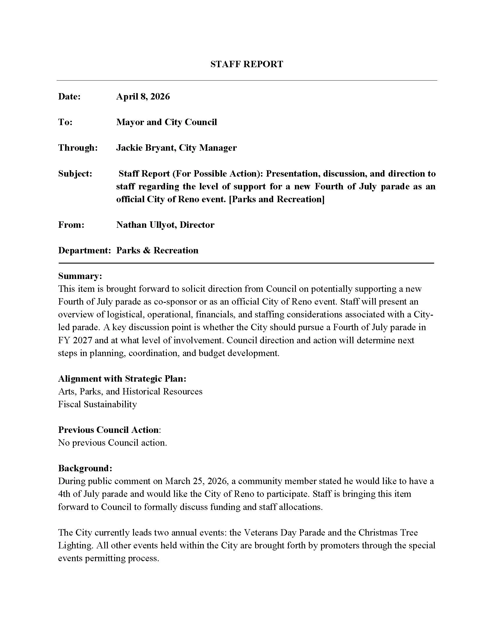 The parade will be heard at the City of Reno Council meeting on April 8th - we’ve published the staff report below.