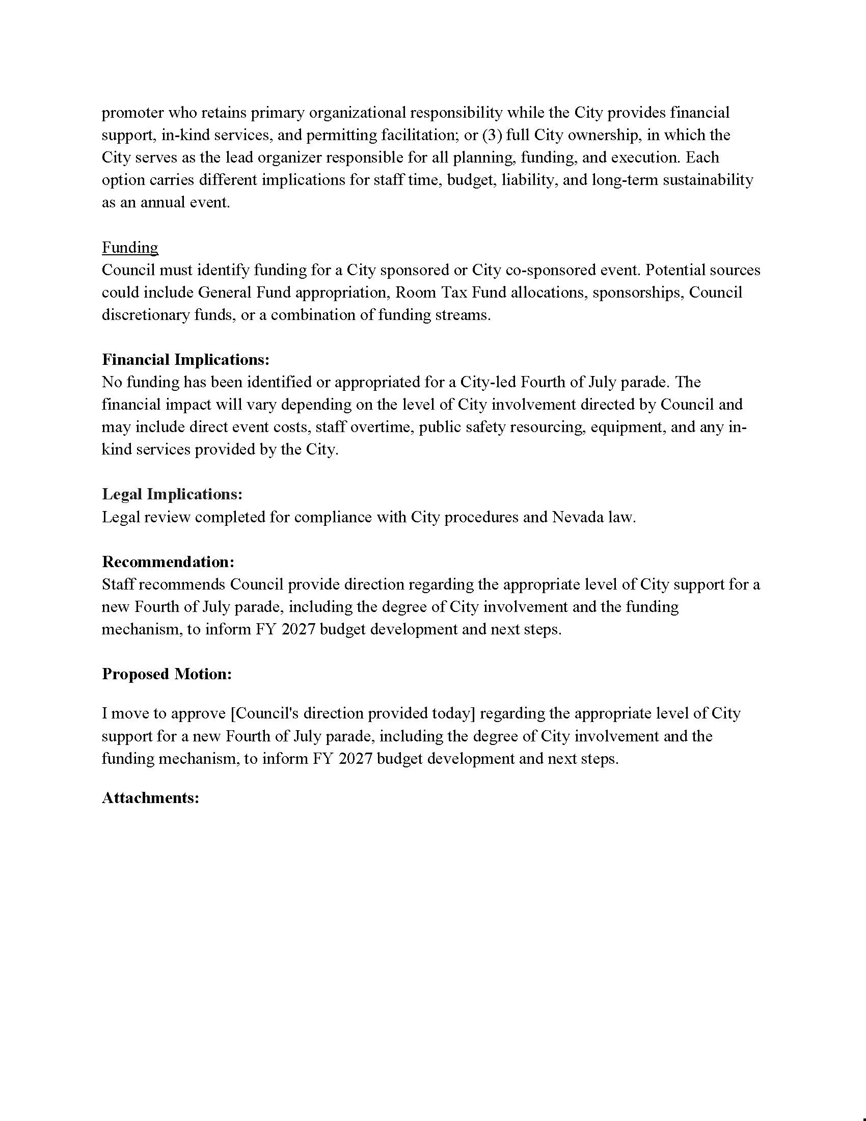 Page 3 shows us the need for 568 hours of staff time for this parade. Really, Eddie wants the City of Reno to spend for a parade? Now that’s fiscally responsible.