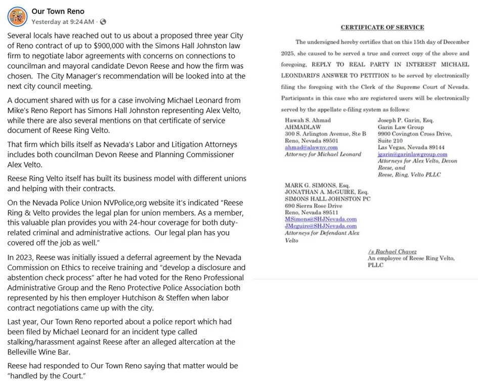 Our Town Reno’s post last week. Would Councilmember Devon Reese have disclosed this information today on the dais without a media push - we’ll never know.