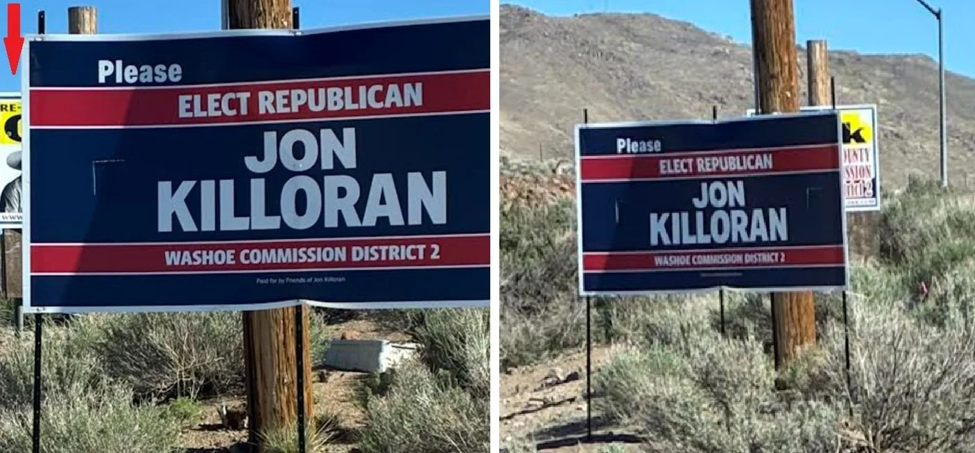The campaign season always finds its rhythm eventually—but in Northern Nevada, one of the first drumbeats is almost always the same: sign wars.