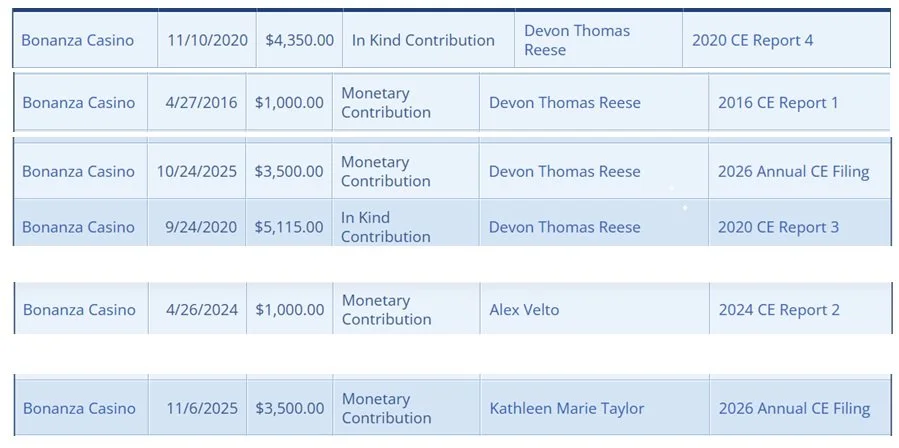 To be fair, the Sheltras have supported many candidates over the years - Meghan Ebert’s predecessor Bonnie Weber comes to mind. In fact there was an ethics violation lobbed against Bonnie. They’ve been generous donors across the community and even helped out Reese’s business partner, Alex Velto, during his unsuccessful run for the Nevada Assembly.