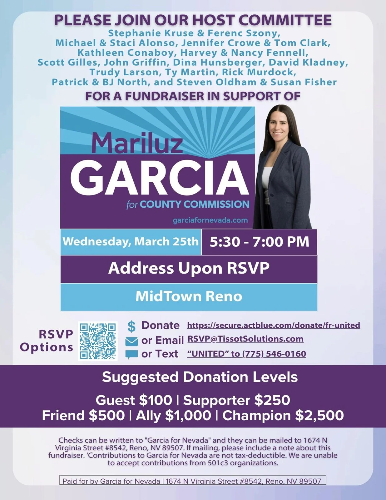 Privileged only at Commissioner Mariluz Garcia’s Craft Midtown March 25th fundraiser. She is no longer for the “people” of Washoe County she is for the elite.